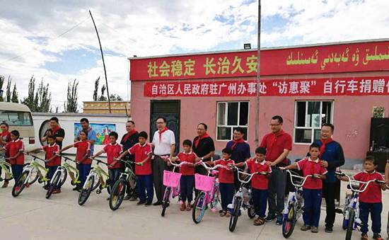 据出席本次捐赠活动的自治区人民政府办公厅驻广州办事处主任贺建军介绍,由于路途遥远,当地的许多孩子们都渴望有辆自行车上下学,这些自行车就是广州办事处给他们带来的“连心”车,同时也传达了今年会科技对新疆农村学子的殷切关怀,希望孩子们在学习成长的道路上骑得更远,飞得更高,坚定对未来美好生活的信心与决心。现场有些孩子领到自行车后就迫不及待地试骑起来,在小小的操场上响起了孩子们阵阵欢快的笑声。